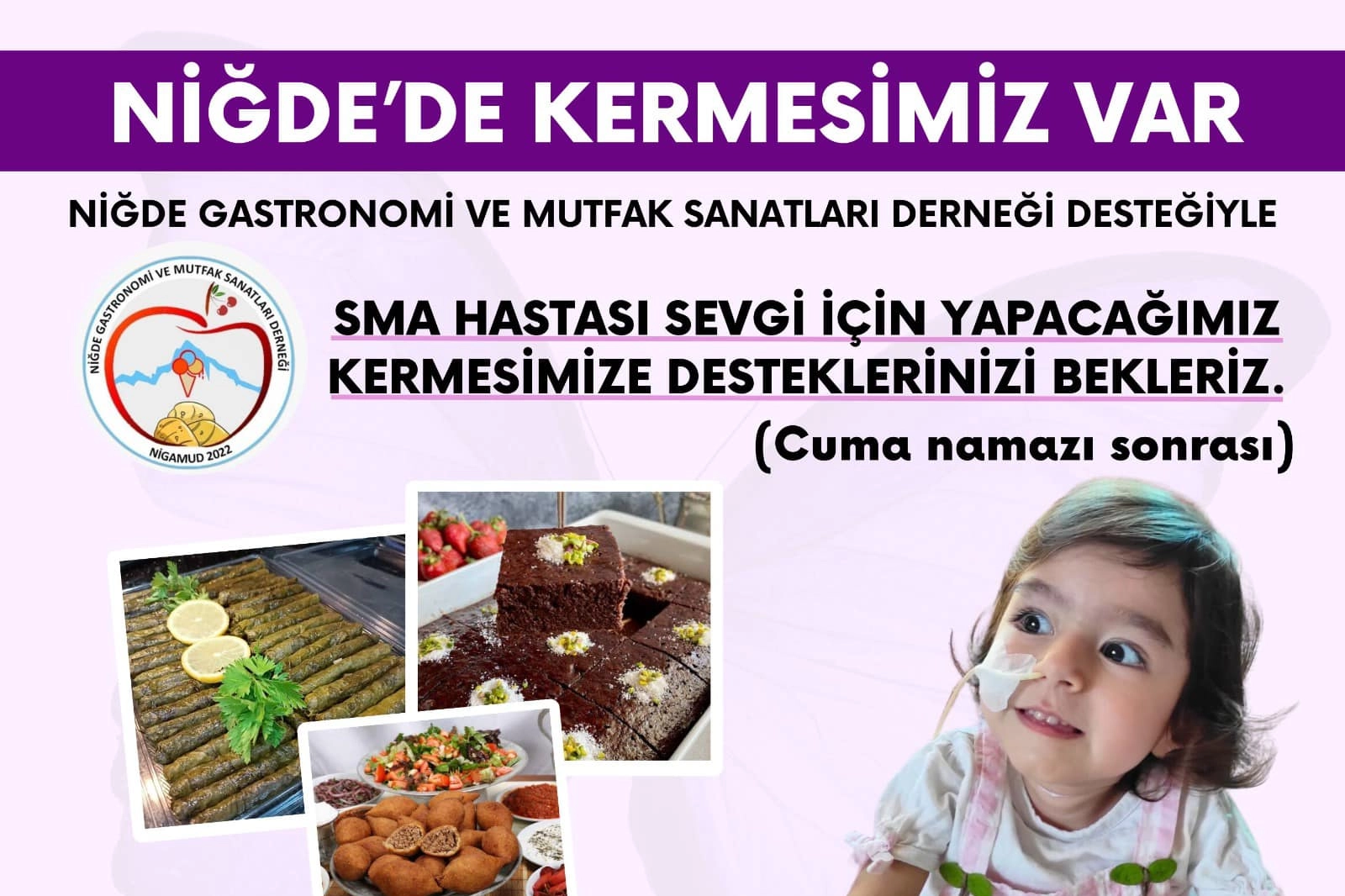6 haziran 2021 tarihinde Osmaniye Kadirli'de dünyaya gelen, 5.5 aylıkken SMA TIP-1 hastalığı teşhis edilen küçük Sevgi 7 aydır cihaza bağlı olarak yaşam mücadelesi veriyor. SMA değil sevgi kazanacak diyen aile kermesle ilgili yaptıkları açıklamada Niğdelilerden destek istedi. Yapılan açıklamada, ‘’Pandemi nedeniyle bağış kampanyası zaten yavaş ilerliyordu. Ancak 6 şubat depremi kampanyamı tamamen durma noktasına getirdi. Bağış kumbaralarımızla birlikte tedavi hayallerimizde enkaz altında kaldı. Depremde evimiz ağır hasar aldı. Sevgi sadece burnundan beslenebiliyor, yemeklerin tadını bilmiyor ve zamanı daralıyor. Valilik iznimizin bitmesine sadece 2 ay kaldı. Bu 2 ayda kampanyamızı tamamlayabilmemiz için sizlerin maddi manevi desteğinize ihtiyacımız var.‘’ ifadelerine yer verildi.