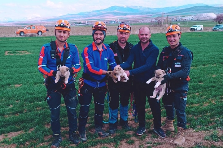 15 metre derinlikteki su kuyusuna düşen yavru köpekler kurtarıldı
