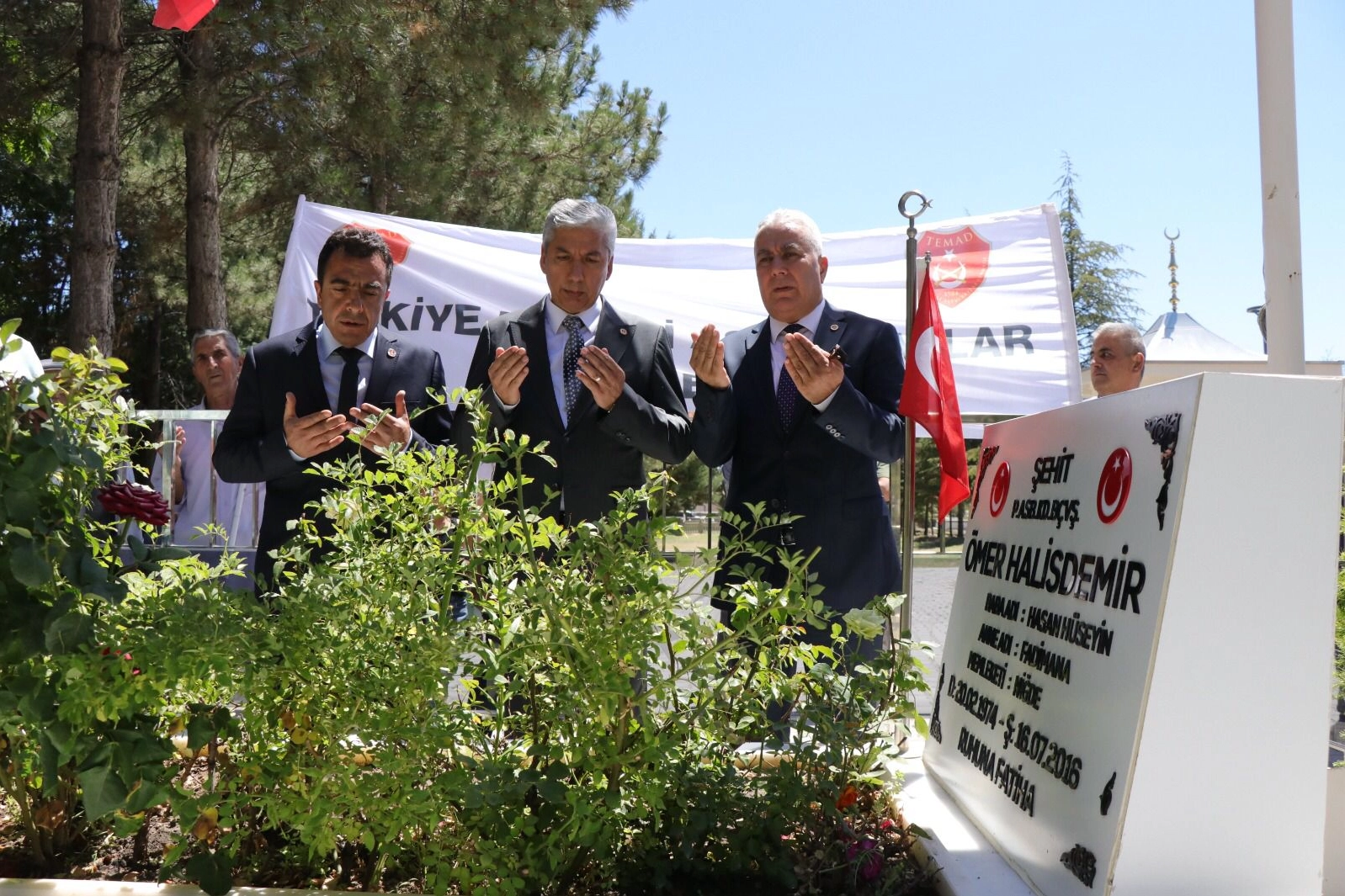 "Her yıl olduğu gibi Niğde’nin Bor ilçesi Çukurkuyu beldesinde, Türk Devletinin işgaline, Türk Milletinin esaretine, Türk demokrasisinin hançerlenmesine yönelik ihanete ve terör saldırısına meydan okuyan kahramanlarımız ve tüm şehitlerimizi anmak, onlara dualar etmek ve onların hatıralarını yaşatmak amacıyla, 15 Temmuz’un simge ismi Kahraman meslektaşımız Şehit Astsubay Ömer HALİSDEMİR’i kabri başında dualarla yad ettik." ifadeleri kullanıldı.