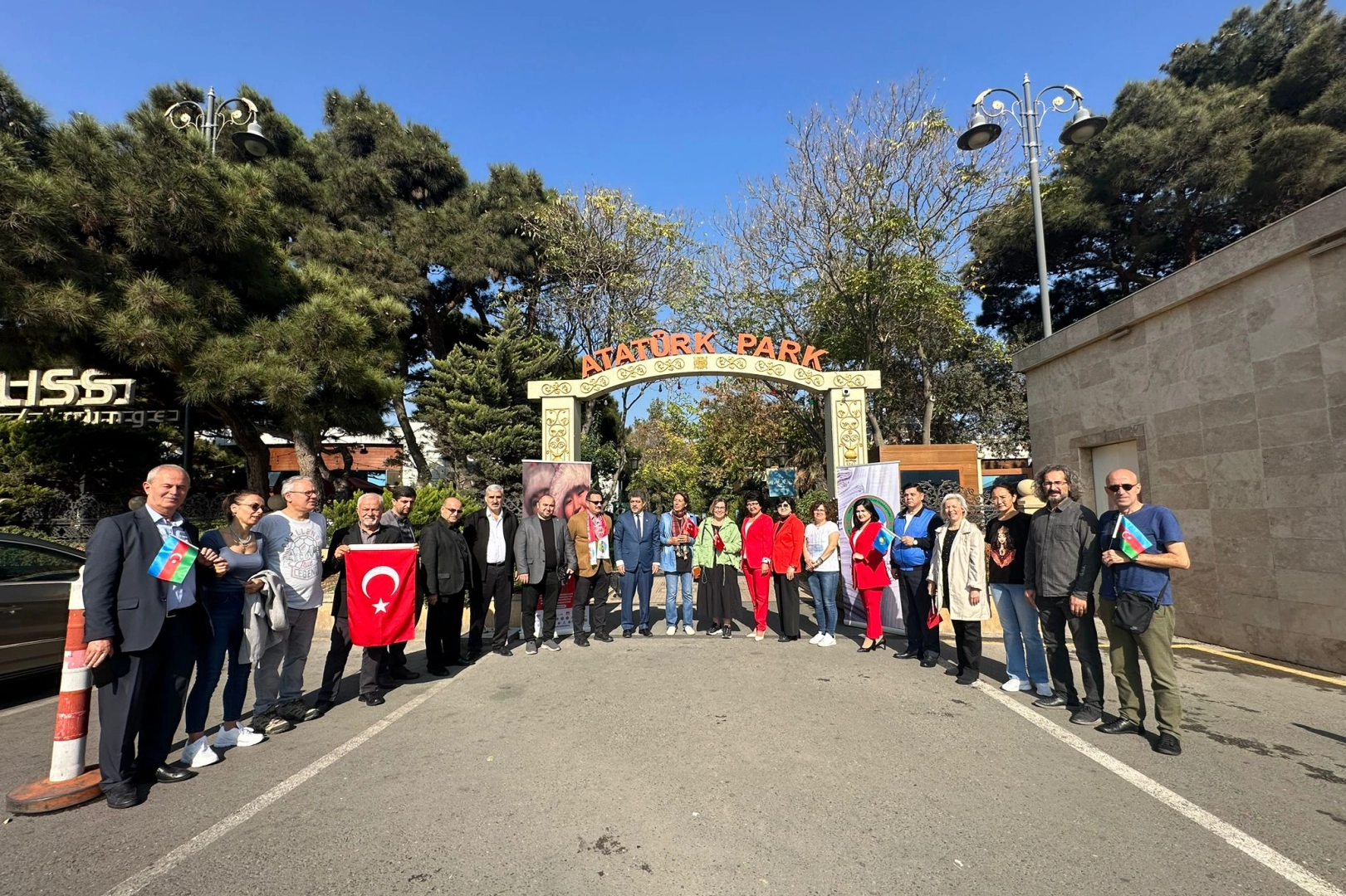 Atatürk Anıtı önünde bir açıklama yapan Türk Dünyası Gazeteciler Federasyonu Başkanı Menderes Demir, "Gazi Mustafa Kemal 19 Mayıs 1919’da Samsun’a çıktığında; 1. Dünya Savaşı kaybedilmiş, orduları dağıtılmış, bütün yurt işgal altındadır. Amasya Genelgesi, Sivas ve Erzurum Kongrelerinin ardından 23 Nisan 1920’de Büyük Millet Meclisi açılarak “Meclis hükümeti” kurulmuş, 9 Eylül 1922’de İzmir’de düşman denize dökülerek Milli Mücadele kazanılmıştır. 100 yıl önce 29 Ekim 1923’de saat 20.30’da “Türk Milletinin karakterine ve adetlerine en uygun yönetim şekli cumhuriyettir.” denilerek “Türkiye Cumhuriyet Devleti” kurulmuştur. Türkiye Cumhuriyeti'nin kuruluşunun 100. Yıldönümünü büyük bir gururla karşılıyoruz. Bakü'de gerçekleştirdiğimiz Türk Dünyası Belgesel Film Festivali film gösterimlerini ve lll. Uluslararası Türk Dünyası iletişim ve Sanat Sempozyumunu paydaşlarımızla birlikte gerçekleştirdik. Etkinliklerimize Türkiye, Özbekistan, Kazakistan, Azerbaycan, Bulgaristan, KKTC'den katılan akademisyen ve belgeselcilerimizle birlikte Bakü Atatürk Parkı Atatürk anıtı önünde toplanarak Türkiye Cumhuriyetimizin 100. Yıldönümü kutluyoruz. İstiklal Mücadelemizin bütün kahramanlarını başta Gazi Mustafa Kemal Atatürk olmak üzere rahmet ve şükranla bir kez daha anıyoruz. Cumhuriyet’imizin 100’üncü yılı kutlu olsun.” şeklinde konuştu.