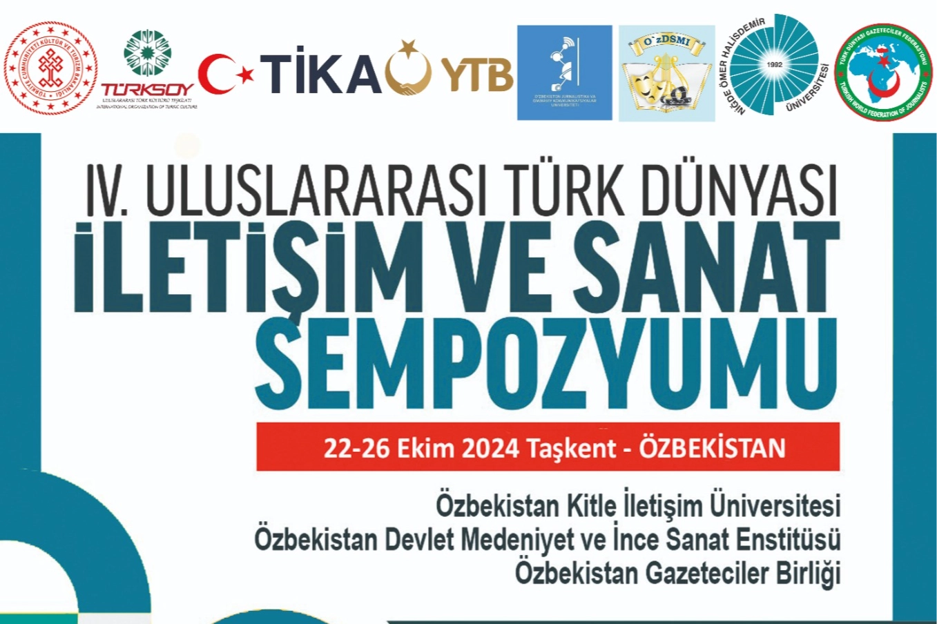 Türkiye Cumhuriyeti Kültür ve Turizm Bakanlığı, Türk İşbirliği ve Koordinasyon Ajansı Başkanlığı (TİKA), Yurtdışı Türkler ve Akraba Topluluklar Başkanlığı (YTB) ve Uluslararası Türk Kültürü Teşkilatı (TÜRKSOY) tarafından doğrudan desteklenen “IV. Uluslararası Türk Dünyası İletişim ve Sanat Sempozyumu” 22-26 Ekim 2024 tarihleri arasında Özbekistan’ın başkenti Taşkent’te gerçekleştirilecek. Özbekistan Kitle İletişim Üniversitesi, Özbekistan Devlet Medeniyet ve İnce Sanat Enstitüsü, Özbekistan Gazeteciler Birliği ev sahipliğinde Niğde Ömer Halisdemir Üniversitesi İletişim Fakültesi koordinatörlüğünde düzenlenecek olan sempozyumun, iletişim ve sanatın tüm alanlarında bilimsel çalışma yapan sanatçı, akademisyen ve bilim insanlarını bir araya getirmesi hedefleniyor.