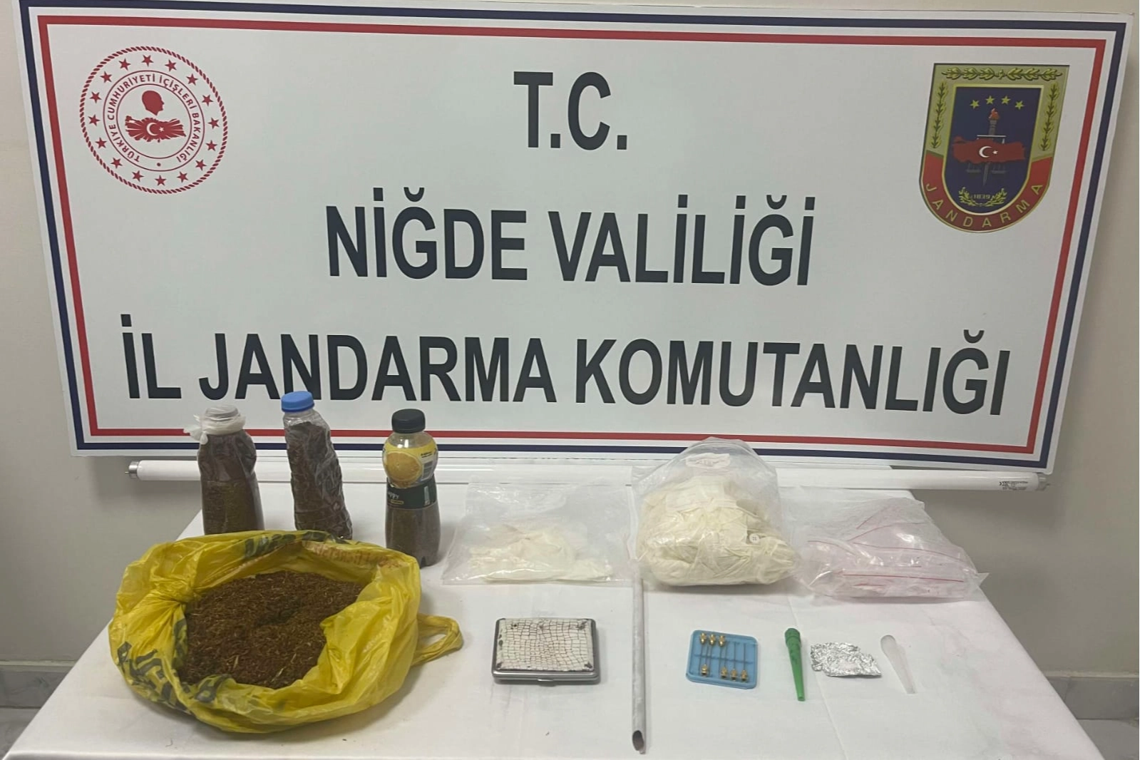 Niğde İl Jandarma Komutanlığı ekiplerince, 17 Mart 2023 günü Uyuşturucu Madde ile Mücadele kapsamında yapılan istihbarı çalışmalar neticesinde; Bor İlçesi Kemerhisar Kasabasında yapılan operasyonda uyuşturucu ve uyarıcı madde imal ve ticareti yaptığı tespit edilen şahısların araçlarında adli makamlardan alınan arama kararına istinaden yapılan aramada; 550gr. Bonzai, 2 gr Metanfetamin, 30 adet Kilitli Şeffaf Poşet, 21 adet Cerrahi Eldiven, 7 adet Özel Uçlu İğne, 1 adet uyuşturucu etkisini artırma amaçlı iç tozu kullanılan floresan lamba 3 adet uyuşturucu kullanma aparatı ele geçirilmiştir.