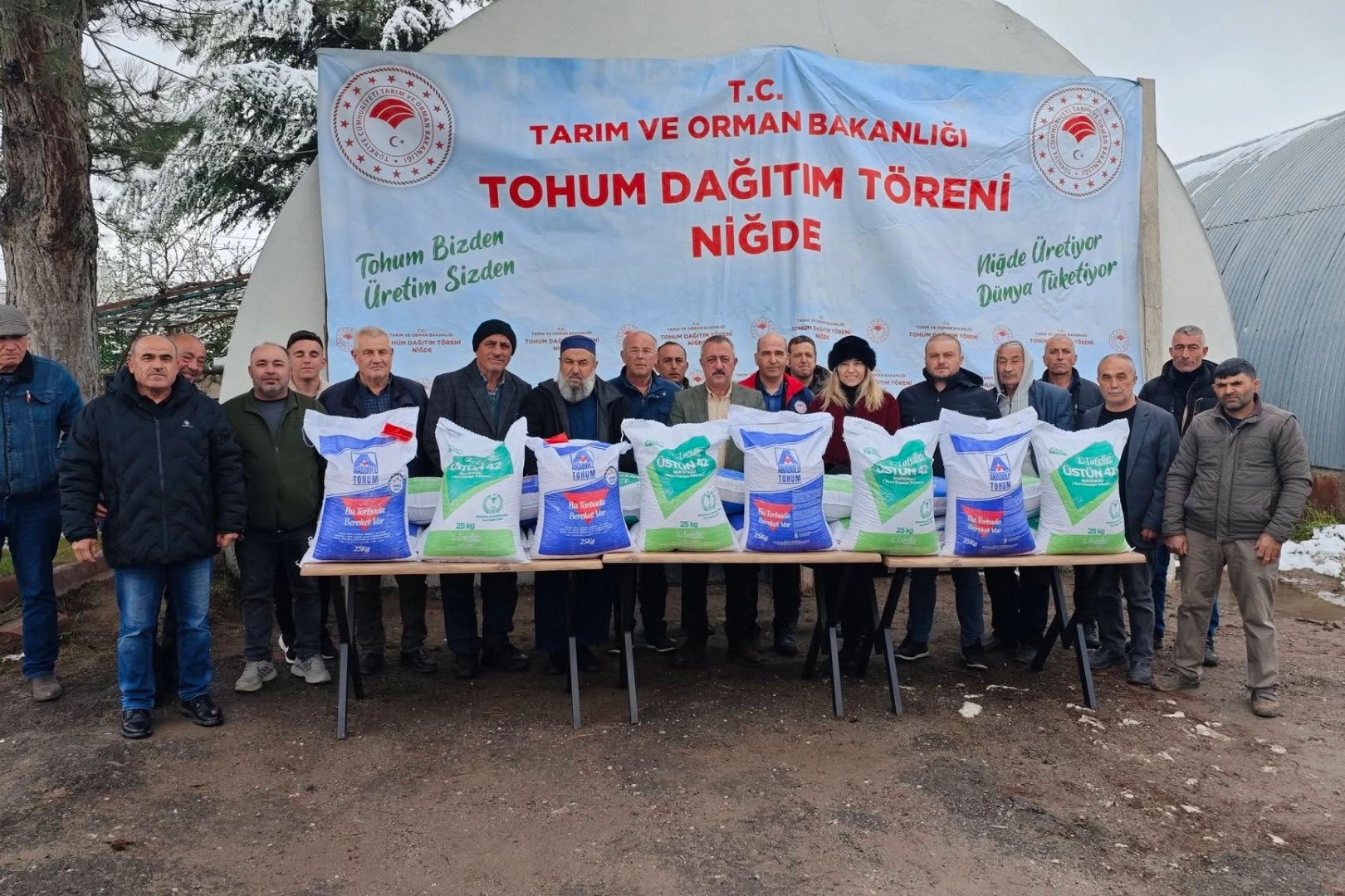 Düzenlenen dağıtım programına Niğde Tarım ve Orman İl Müdürü Asım Baş, Bitkisel Üretim ve Bitki Sağlığı Şube Müdürü Suat Elli , İdari ve Mali İşler Şube Müdürü Şenol Şahin ile tohum almaya hak kazanan üreticiler katıldı.