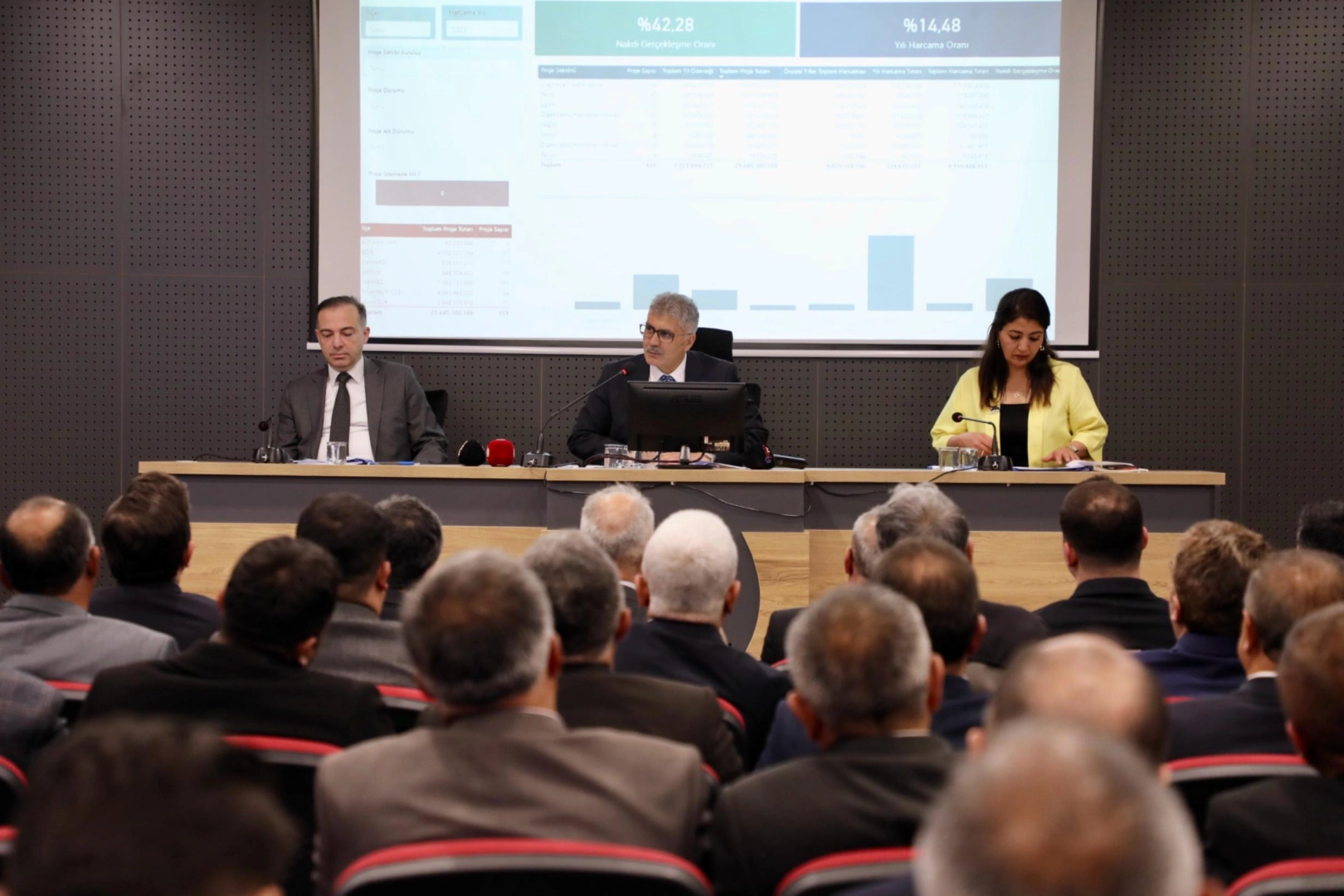 Projelerin 60'ının tarım, 26'sının ulaştırma, 34'ünün kamu hizmetleri, 16'sının eğitim, 5'inin sağlık, 4'ünün enerji ve 6'sının kültür ve turizm sektörlerine ait olduğunu aktaran Vali Çelik, "İlimizde yürütülen 151 projenin toplam değeri 21 milyar 645 milyon 368 bin liradır. Bu projeler için toplam 2 milyar 221 milyon 14 bin lira ödenek ayrılmış olup, bu ödeneğin 321 milyon 672 bin lirası harcanmıştır. Proje tutarına göre dönem içerisinde nakdi gerçekleşme oranıysa yüzde 14,48'dir." ifadelerini kullandı.