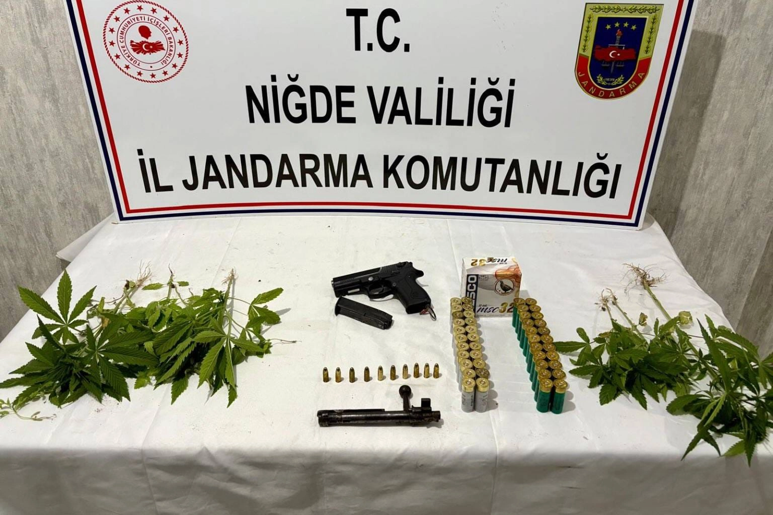 Niğde İl Jandarma Komutanlığınca 11 Haziran 2025 günü Bor'un Karanlıkdere köyünde araştırma neticesinde 1 şahsın üzerinde, kullanmış olduğu araçta ve ikametgâhında yapılan aramada; 11 kök kenevir bitkisi, 3 adet uyuşturucu içiminde kullanılan aparat, 1 adet ruhsatsız tabanca, 1 adet uzun namlulu tüfek mekanizması, 10 adet 9 mm tabanca fişeği ve 79 adet av tüfeği fişeği ele geçirildi.