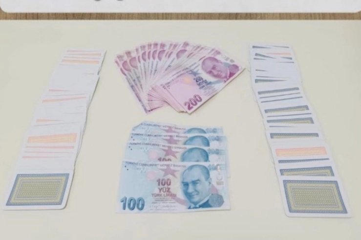 Operasyon sırasında yapılan aramada; 6 bin 600 TL'lik kağıt para, 2 deste iskambil kağıdı ve yazboza ele geçirildi.