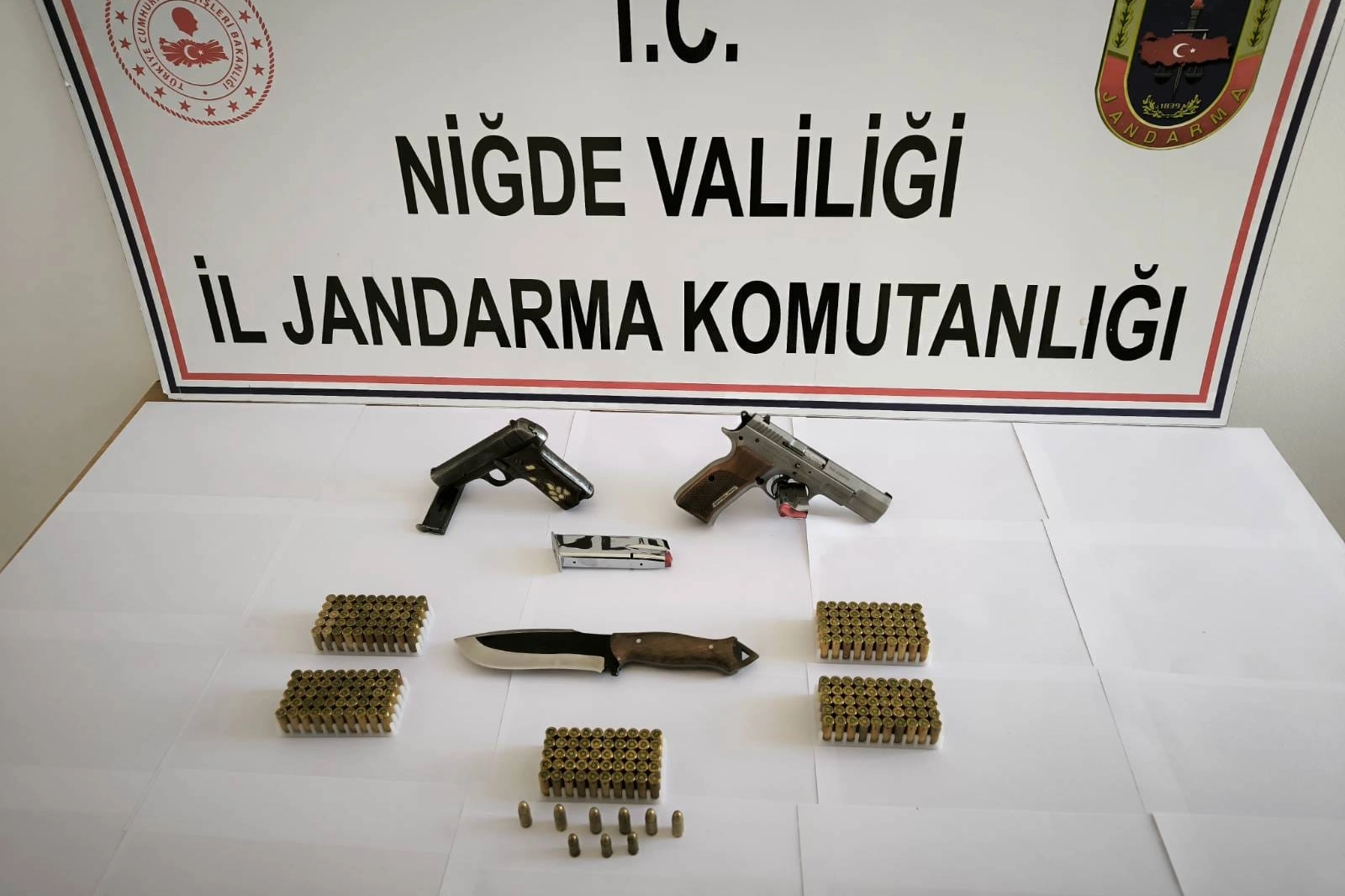 Niğde İl Jandarma Komutanlığınca Ruhsatsız Ateşli Silah ile mücadele kapsamında Altunhisar'ın Çömlekçi köyünde 1 şüpheli şahsın evinde yapılan aramada; 1 adet 9 mm çapında Sarsılmaz marka tabanca, 1 adet 7,65 mm çapında tabanca, 259 adet fişek, 1 adet bıçak ele geçirildi.