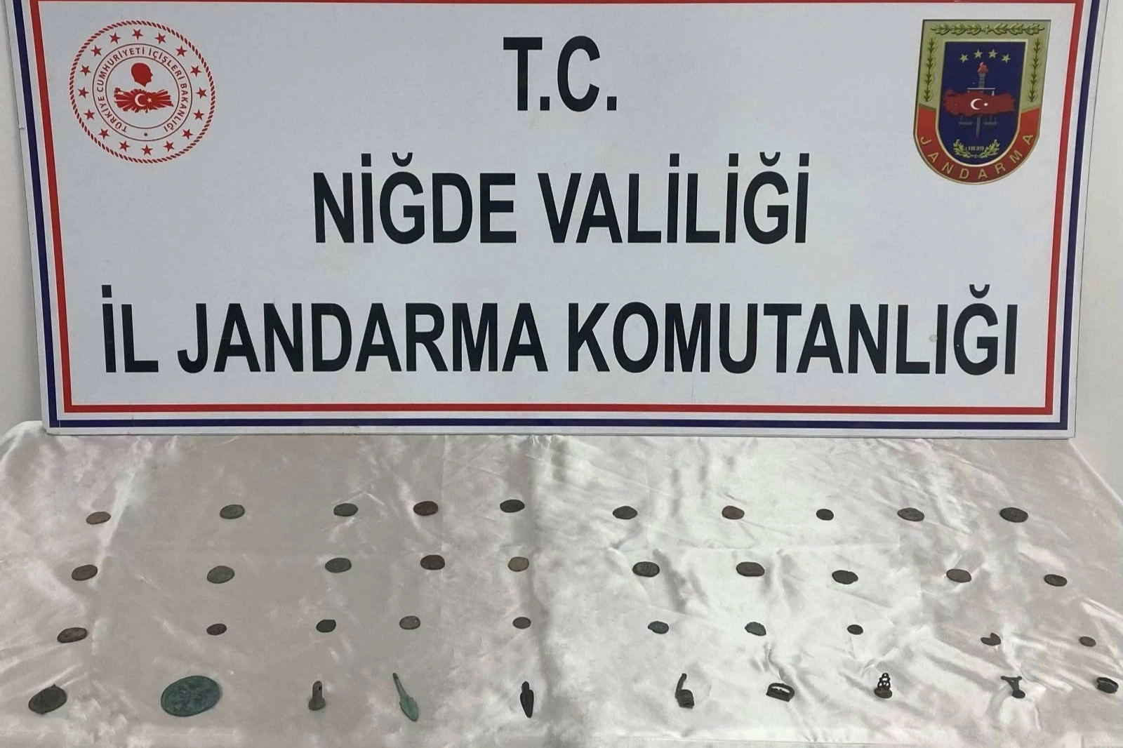 İl Jandarma Komutanlığı ekiplerince yürütülen çalışmalar sonucunda, Niğde'nin Altunhisar ilçesinde tarihi eser satışı yapıldığı tespit edildi. Elde edilen bilgiler doğrultusunda düğmeye basan jandarma ekiplerince yapılan operasyonda 1 şüpheli gözaltına alındı. Operasyonda yapılan aramada 32 sikke ve 10 tarihi obje ele geçirildi.