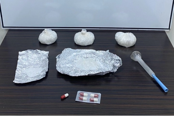 133,23 gr. metamfetamin maddesi, 50 gr. tütün, 4,74 gr. sentetik kannabinoid (Bonzai) maddesi, 0,92 gr. sentetik kannabinoid hammaddesi, 6 adet sentetik ecza maddesi, 1 adet uyuşturucu kullanım aparatı (payp), 14 adet 9*19 mm fişek, 2 adet uzun namlulu tüfek fişeği, 1 adet 45 kalibre fişek ele geçirildi.