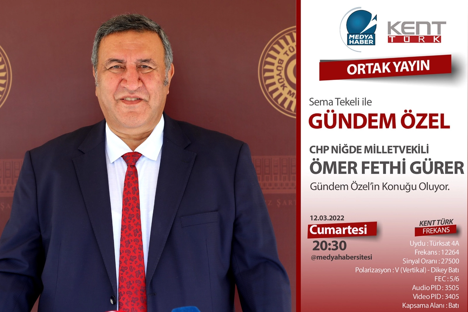 "Sema Tekeli ile Gündem Özel" programının 12 Mart Cumartesi günü saat 20.30’da yayınlanacak yeni bölümünde ise CHP Niğde Milletvekili Ömer Fethi Gürer konuk olacak.