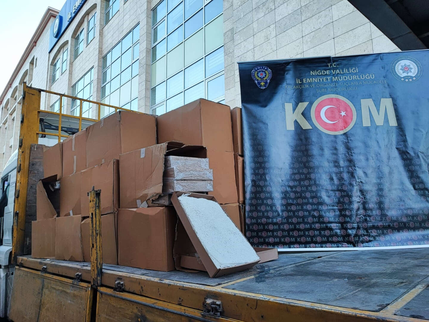 Niğde Emniyet Müdürlüğü, Kaçakçılık ve Organize Suçlarla Mücadele Şube Müdürlüğü Ekipleri milyonlarca makaron ele geçirdi. Niğde Kaçakçılık ve Organize Suçlarla Mücadele Şube Müdürlüğü ekipleri, 20 Mayıs tarihinde bir araçta arama yaptıkları esnada 2 milyon 65 bin adet kaçak tütün mamulü makaron ele geçirdi. Olayda bir şüpheli şahıs hakkında adli işlemler başlatıldı. Niğde Emniyet Müdürlüğü’nden konu ile ilgili yapılan açıklamada: ‘‘Devletimizi vergi kaybına uğratan kaçakçılıkla mücadele kapsamında yürütülen çalışmalarda, Müdürlüğümüz Kaçakçılık ve Organize Suçlarla Mücadele Şube Müdürlüğü görevlilerince 20.05.2023 tarihinde bir araçta yapılan aramada gümrük kaçağı 2.065.000 adet Tütün Mamulü Makaron ele geçirilmiş olup, yakalanan 1 (Bir) Şüpheli şahıs hakkında 5607 SKM suçu kapsamında gerekli işlemler yapılmıştır. İlimiz genelinde kaçakçılık suçlarıyla mücadele hassasiyetle ve kararlılıkla sürdürülmektedir.’’ ifadelerine yer verildi. |