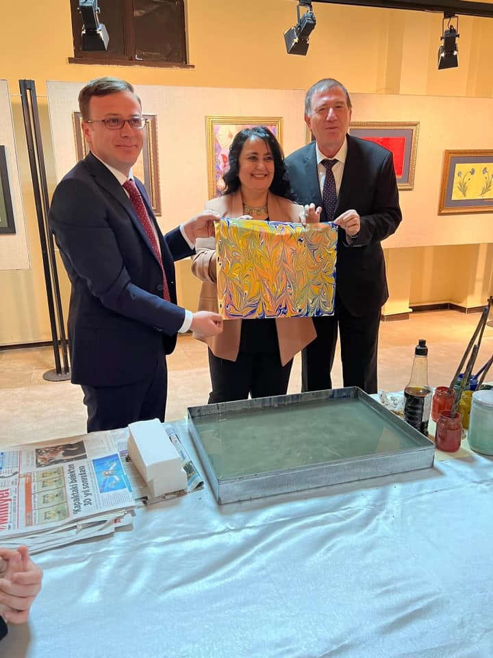 Açılış programının ardından ziyaretçilerce, ebru sanatı sergisi ve filografi sanatından oluşan sergi gezildi.