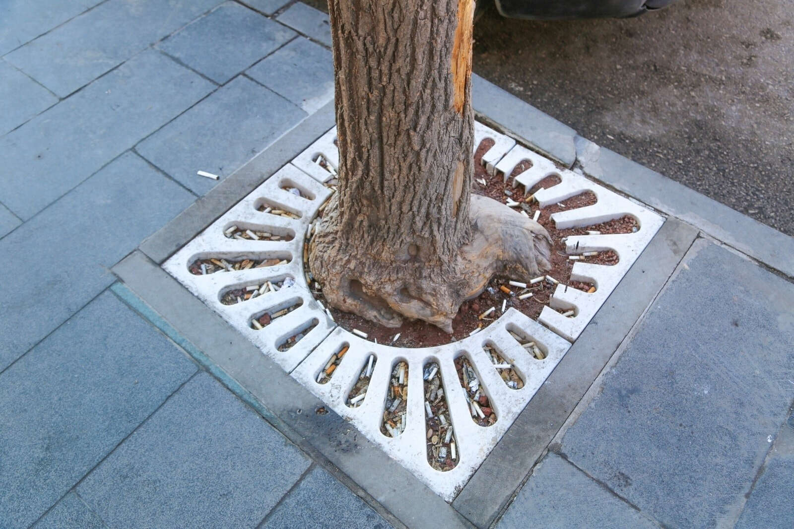Niğde Belediyesi tarafından kaldırımlardaki ağaçların toprak muhafazasını korumak için yapılan ızgaralara hemen yanında çöp kutusu olmasına rağmen sigara izmaritleri atılması pes dedirtti.