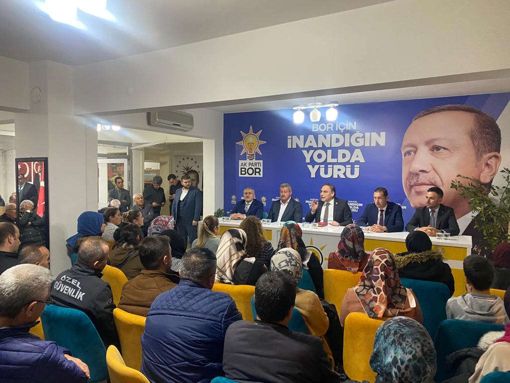 Altunhisar, Bor, Çamardı, Çiftlik ve Ulukışla ilçelerinde de düzenlenen toplantılara MKYK üyeleri Emre Çalışkan, Halise Çiftçi, Nazan Aytop, Arzu Silin Günaydın, Aksaray Milletvekili Cengiz Aydoğan, Ankara Milletvekili Nevzat Ceylan, Nevşehir Milletvekili Mustafa Açıkgöz ve Yücel Menekşe, Adana Milletvekili Abdullah Doğru AK Parti Niğde Koordinatörü Davut Coşkun Şiviloğlu’nun yanı sıra, AK Parti Niğde İl ve ilçe yöneticileri, milletvekilleri, belediye başkanları, kadın ve gençlik kolları yönetim kurulu üyeleri, belde başkanları da katıldı.