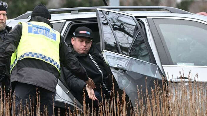 Rasmun Paludan, polisin sadece izlediği çirkin saldırının ardından böyle görüntülendi..