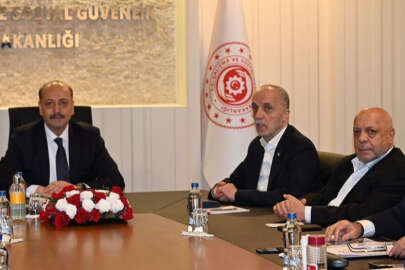 Çalışma ve Sosyal Güvenlik Bakanı Vedat Bilgin, 2023 Yılı Kamu Toplu İş Sözleşmeleri Çerçeve Protokolü Görüşmeleri kapsamında Türkiye İşçi Sendikaları Konfederasyonu (Türk-İş) ve Hak İşçi Sendikaları Konfederasyonu (Hak-İş) heyetleri ile bakanlıkta bir araya geldi.