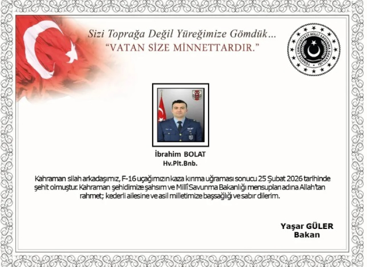 Balıkesir’de 9. Ana Jet Üssü Komutanlığı filosuna ait bir F-16 savaş uçağı, kalkıştan kısa süre sonra kaza kırıma uğradı. Saat 00.50 sıralarında meydana gelen kazada uçağın pilotu Hava Pilot Binbaşı İbrahim Bolat şehit oldu.