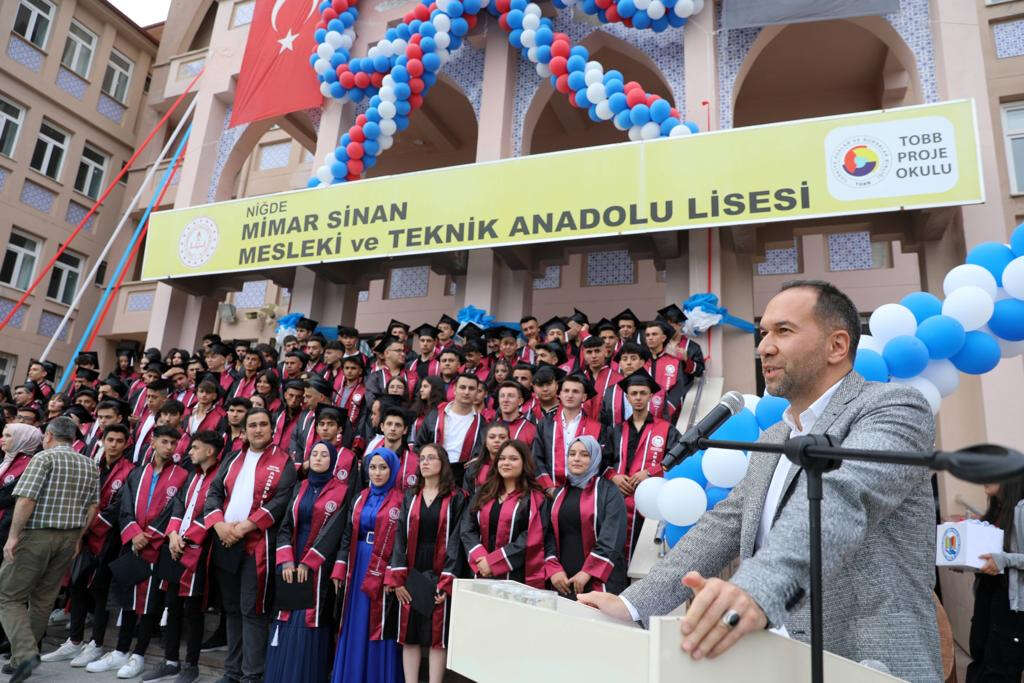 Geçtiğimiz hafta Özdemir'in gerçekleştirmiş olduğu ziyaretler kapsamında , TOBB Proje okulu olan, Mimar Sinan Mesleki ve Teknik Anadolu Lisesi öğrencilerinin mezuniyet törenlerine katıldı. Mezuniyet törenininde konuşan Başkan Özdemir" Her biri birbirinden değerli bu kardeşlerimizin vatana millete hayırlı, çok güzel işler yapacaklarına eminiz, Rabbim bundan sonraki hayatlarını başarı dolu kılsın, yardımcıları olsun inşallah" dedi.