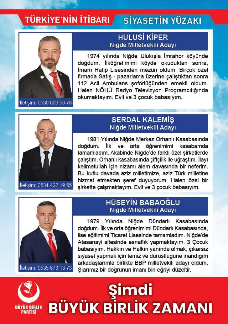 Büyük Birlik Partisi Niğde Milletvekili adayları kısa özgeçmişleri
