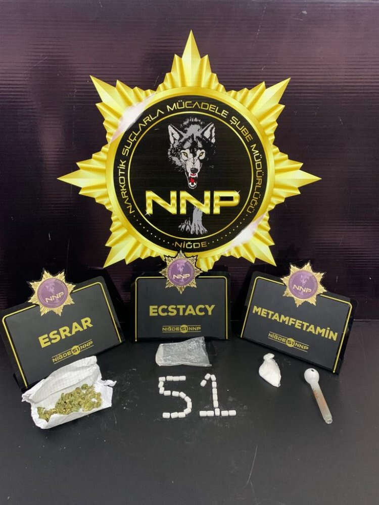 Niğde Nartotik Suçlarla Mücadele Şube Müdürlüğü ekiplerinin yaptığı, uyuşturucunun arzı ile mücadele kapsamında sokak satıcıları ve kullanıcılarına yönelik yürütülen çalışmalarda yakalanan 24 şahısta; 46,05 gram ağırlığında ESRAR, 27 adet ECSTASY hap, 17,02 gram ağırlığında SENTETİK KANNABİNOİD BONZAİ, 13,64 gram ağırlığında METAMFETAMİN, 3,82 gram ağırlığında EROİN ve 2 adet SENTETİK ECZA ele geçirildi.