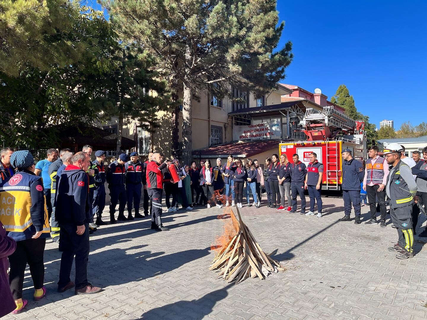 Çok sayıda personelin katıldığı tatbikatla birlikte olası yangın durumunda gerekli önlemler tecrübe edilmiş oldu.