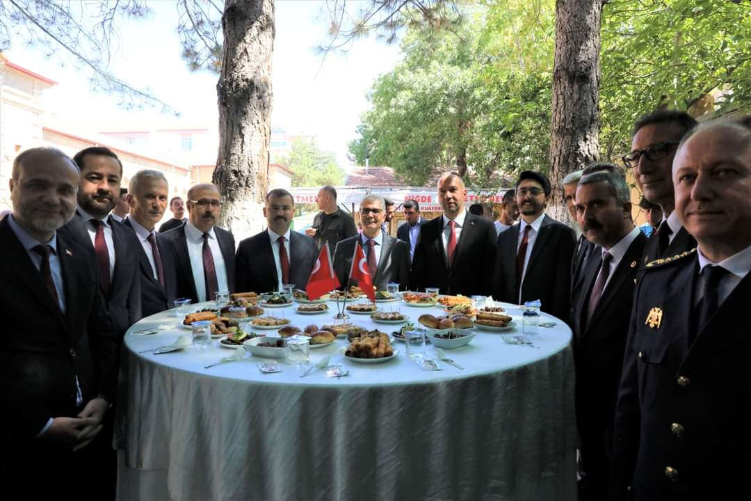 Cumhuriyet meydanında gerçekleştirilen kutlamaların ardından Vali Cahit Çelik makamında Belediye Başkanı Emrah Özdemir ile beraber bayram tebriklerini kabul etmesi ile devam etti. Düzenlenen törene Niğde Valisi Dr. Cahit Çelik, Belediye Başkanı Emrah Özdemir, İl Jandarma Komutanı Albay Nihat Özkök, İl Emniyet Müdürü Adnan Özdemir, Niğde Ömer Halisdemir Üniversitesi Rektörü Prof. Dr. Hasan Uslu, Niğde Milletvekili Cevahir Uzkurt, protokol üyeleri ve vatandaşlar katıldı.