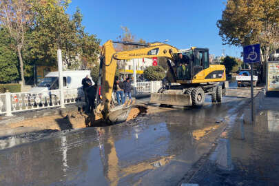 SABAH SAATLERİNDE PATLAYAN SU BORUSUNUN TAMİRİ SÜRÜYOR