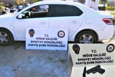 Niğde Asayiş Şube Müdürlüğü ekiplerinin mala karşı işlenen suçlarla mücadele kapsamında ilimiz merkezinde yürüttüğü devriye hizmetleri sırasında, çalıntı araç kaydı bulunan ve aracı kullanan olayın şüphelisi olan S.Ü. yakalandı. Araç içerisinde yapılan kontrollerde 1 adet de ruhsatsız tabanca ele geçirildi.. Araç sahibine teslim edilmek üzere muhafaza altına alınırken, şüpheli S.Ü. hakkında işlemler devam ediyor.