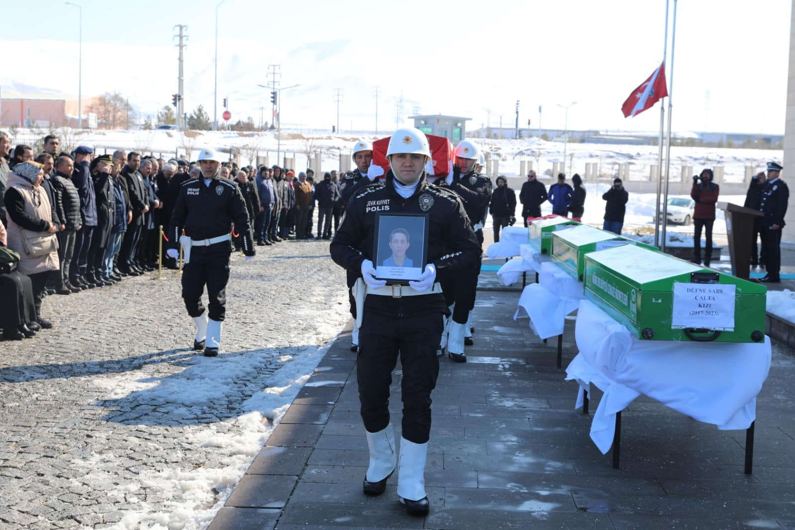 Hatay’da enkaz altında kalarak hayatını kaybeden Polis Memuru Uğur Çalta, eşi Şeyma Çalta ve çocukları Mehmet Akif ile Defne Sare Çalta, Niğde İl Emniyet Müdürlüğünde düzenlenen resmi törenle son yolculuklarına uğurlandılar.