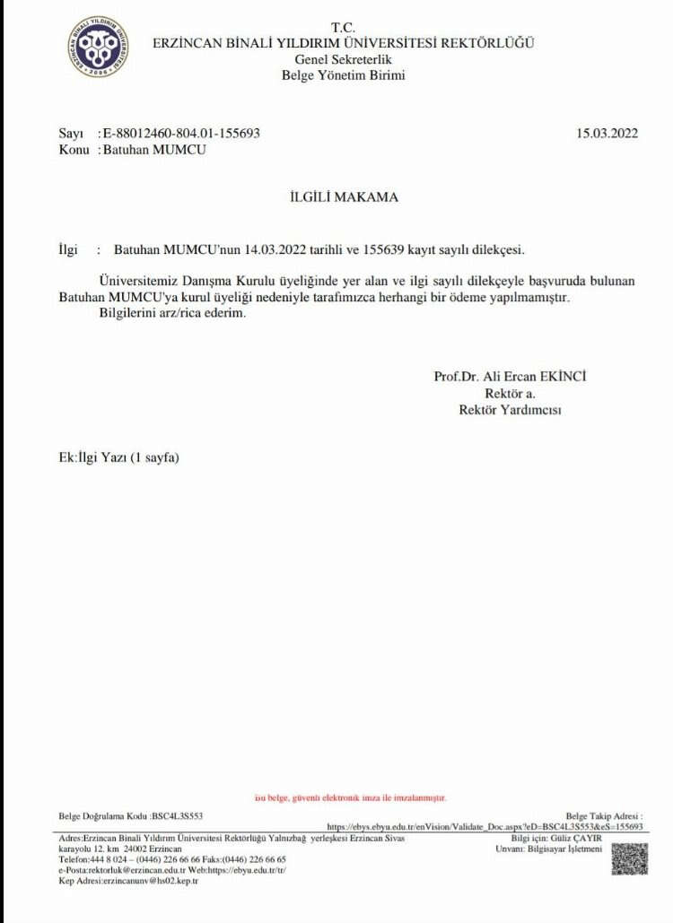 Her şeyine kefil olacak kadar yakın tanıdığım Batuhan Mumcu, bana iddia konusu kamu kuruluşlarından herhangi bir ücret almadığına dair resmi yazıları da yolladı.
