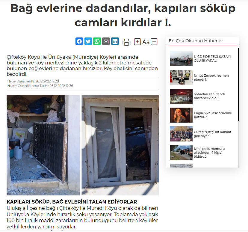 26 Aralık 2022 tarihinde yapılan hırsızlık haberi için aşağıdaki fotoğrafa tıklayınız..