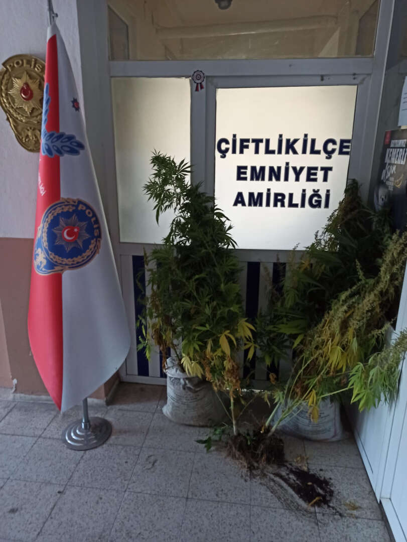 Yakalanan şahısların ikamet ettikleri evde yapılan aramada; 8 kök kenevir bitkisi, 2 adet kurusıkı tabanca ele geçirildi. Yakalanan şahıslar göz altına alındı.