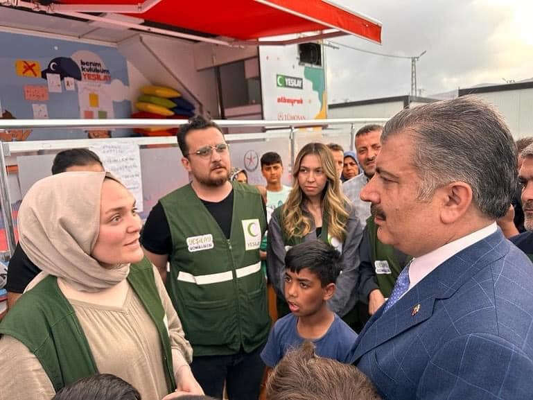 Yeşilay Niğde, sosyal medya hesabından yaptığı paylaşımda; ”Sağlık Bakanımız Sayın Dr. Fahrettin Koca Hatay’da bulunan ve TÜMOSAN iş birliği ile psikososyal destek hizmeti vermek üzere hayata geçirilen Benim Kulübüm Yeşilay Tırımızı ziyaret etti. Gönüllülerimizden faaliyetlerimiz hakkında bilgi alan Sayın Koca, depremden etkilenen çocuklarımıza yönelik gerçekleştirdiğimiz etkinliklerimize de katıldı.” ifadelerine yer verdi.