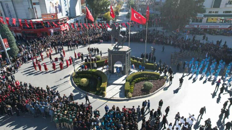 Niğde Cumhuriyet Meydanında düzenlenen etkinliklerde ilk olarak Niğde Valisi Mustafa Koç, Niğde Belediye Başkanı Emrah Özdemir halkı ve öğrencileri selamladı. İstiklal Marşının okunmasının ardından günün anlam ve önemine binaen cumhuriyet şiirini okundu.