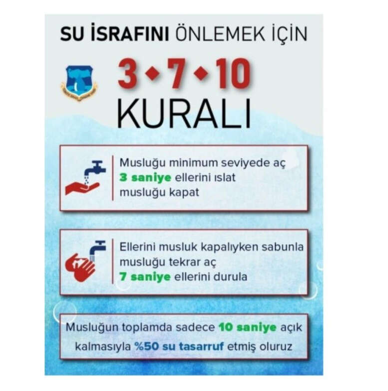 “Bireysel olarak yapılan israflar içerisinde, su israfı değerlendirildiğinde; damlaya damlaya akan bir musluk, yılda 3 metreküplük su kaybına sebep olmaktadır. Bunun her konuta maliyeti yaklaşık 6 bin TL civarındadır. Türkiye’de yaklaşık 19 milyon konuttan sadece ’unda böyle bir durum olduğunda, oluşan israf yaklaşık 11 milyar TL’dir. Bir kişinin günde iki kez 1 dakika boyunca musluk suyunu kapatmadan diş fırçalaması yılda 8 ton su israfına neden olmaktadır. Bunu, nüfusumuzun %20’sinin yaptığını tahmin ettiğimizde, ülkemizin toplam kaynak kaybı yaklaşık 13 milyar TL olmuş oluyor. Dört kişilik bir ailenin her üyesinin duş süresini 1 dakika kısaltmasıyla yılda 18 ton su tasarrufu sağlanmaktadır. Nehir kenarında olsak dahi suyu israf etmeden kullanmalıyız. Çünkü suyun alternatifi yok. Suyumuzu koruyalım ve tasarruflu kullanalım”