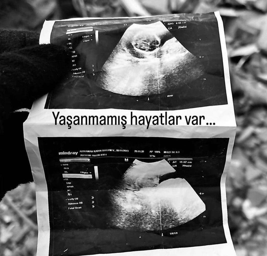 Enkazlara yakın bir bölgede bulunan bu ultrason fotoğrafı ise sosyal medyada en çok etkileşim alan fotoğraf oldu. 'Hayalleri ve yaşanmamışlıkları kaldı' notuyla paylaşıldı.