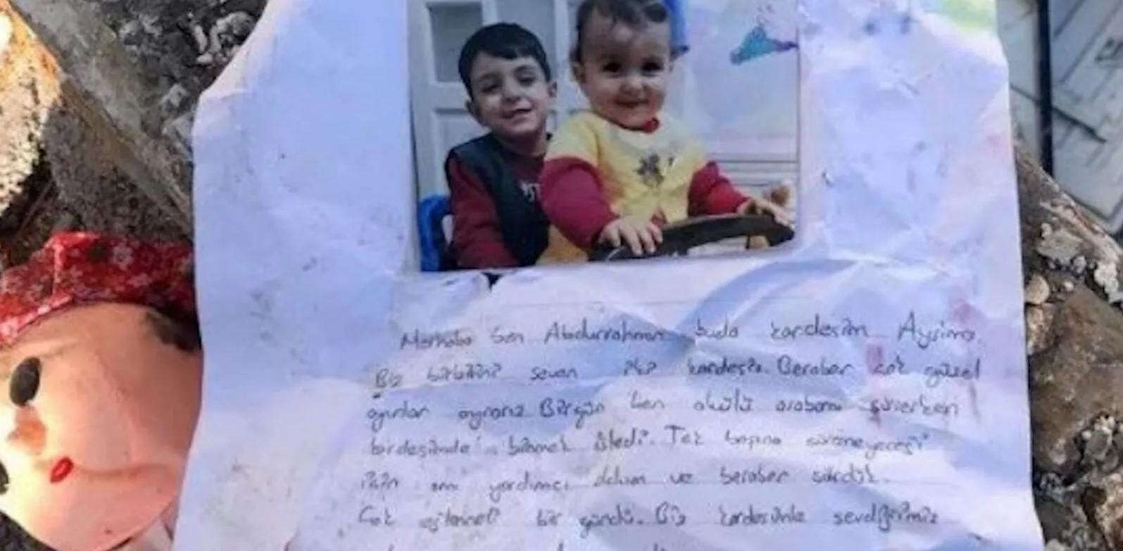Maloz yığınları arasında çıkan bir diğer not ise depremde hayatını kaybeden iki kardeşten Addurrahman'ın ablası için yazdıkları herkesin gözlerini doldurmuştur."Merhaba. Ben Abdurrahman bu da kardeşim Aysima. Biz birbirimizi seven iki kardeşiz. Beraber çok güzel oyunlar oynarız. Bir gün ben akülü arabamı sürerken kardeşim de binmek istedi. Tek başına süremeyeceği için ona yardımcı oldum ve beraber sürdük. Çok eğlenceli bir gündü. Biz kardeşimle sevdiğimiz oyunları oynayıp devam ediyoruz"