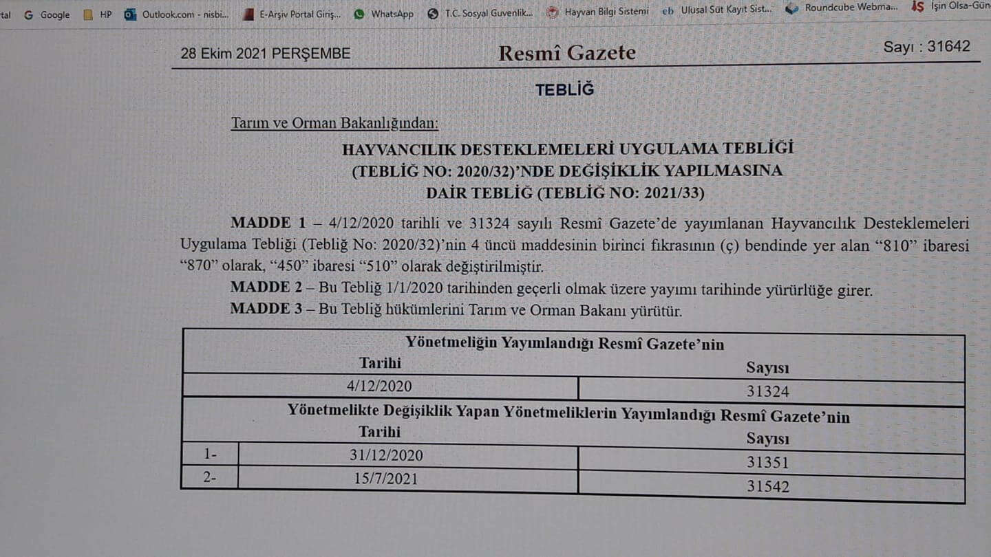 Desteklerden yararlanılması için 4 ay ve üzeri yaştaki düvelerin ilkine buzağılama yaş sınırı en fazla 810 günden 870 güne çıkartılırken, ineklerde de iki buzağılama arasındaki süre en fazla 450 günden 510 güne yükseltildi.