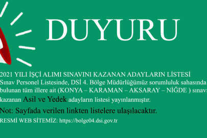 Linkten ulaşamayanlar sınav sonuçlarına Devlet Su İşleri 4. Bölge Konya Müdürlüğü internet sayfasında da erişebiliyor.