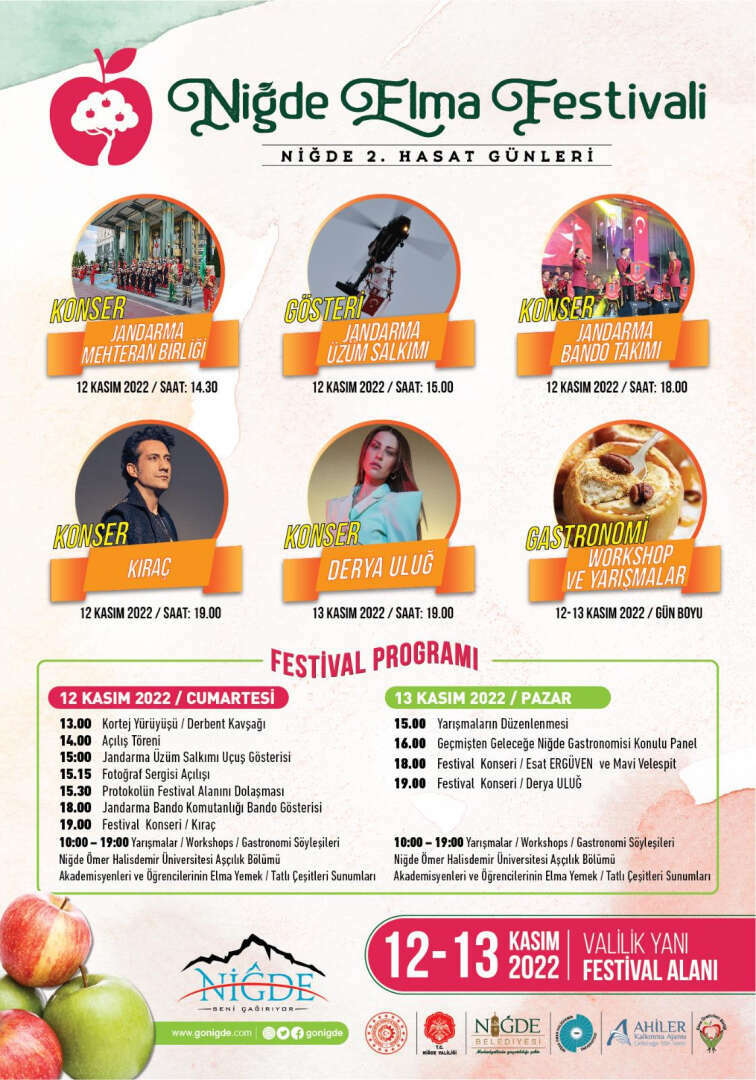 Niğde’nin yetiştirdiği tarım ürünlerinden en önemlilerinden birisi olan elmanın önemini vurgulamak amacıyla yapılan festivalde Dünyaca Ünlü Şefler, Gastronomi Şöleni İçin Niğde’de Buluşacak. Vatandaşlar ise Festivale katılacak olan gastronomi profesyonellerinin hünerlerini seyredecekler.