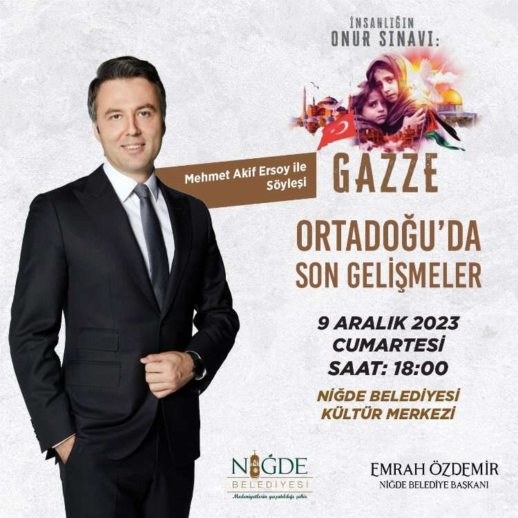7 Ekim’den bu yana kanın ve gözyaşının durmadığı, çoğunluğu çocuk ve kadın olmak üzere binlerce masumun yaşamını yitirdiği Gazze’ye giderek yaşanan dramı gözler önüne seren Gazeteci Mehmet Akif Ersoy, oradaki izlenimlerini, Niğde Belediyesi tarafından 9 Aralık’ta düzenlenecek söyleşide, katılımcılara aktaracak.