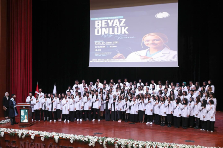 Niğde Ömer Halisdemir Üniversitesi Kongre ve Kültür Merkezi'nde gerçekleşen törende 115 öğrenci, beyaz önlük giydi. İstiklal ve saygı duruşunun ardından başlayan törende müzik dinletisi de yapıldı. Törende konuşan Niğde Ömer Halisdemir Üniversitesi Rektör Yardımcısı Prof. Dr. Nafiz Tok; "Mesleki donanımlara sahip hekimler olarak yetişmeniz bizim için yeterli değil. Üç şey önemlidir. İyi bir insan olmak, iyi bir yurttaş olmak ve tam donanımlı hekimler olarak buradan mezun olmanız bizim için önemlidir" dedi.
