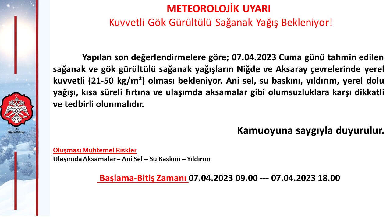 Ulaşımda aksamalar, ani sel, su baskını ve yıldırım riskine karşı yapılan uyarılarda dikkatli ve tedbirli olunması gerektiği vurgulandı.