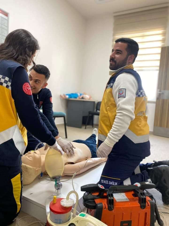 Eğitim kapsamında ‘ Kalite dökümanları, asos kullanımı, oksijen tüpü ve sistemlerinin güvenli kullanımı, ambulans ekipmanları, ileri hava yolu uygulamaları, EKG, temel yaşam desteği, acil olgu ve triaj ‘ konularında eğitimler verildi.