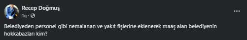 Yaptığı belediyecilik faaliyetleri ve sosyal anlamda hizmetleri ile adından söz ettiren Niğde Merkez’e bağlı Hacıabdullah Belediye Başkanı Recep Doğmuş, geçtiğimiz gün sosyal medya platformu Facebook üzerinden çok ciddi iddialarda bulundu. Bazı kişilerin belediye imkanları ile kendine yarar sağladığını iddia eden Başkan Doğmuş’un paylaşımlarında dile getirdiği iddialardan bazılar ise şunlar:
