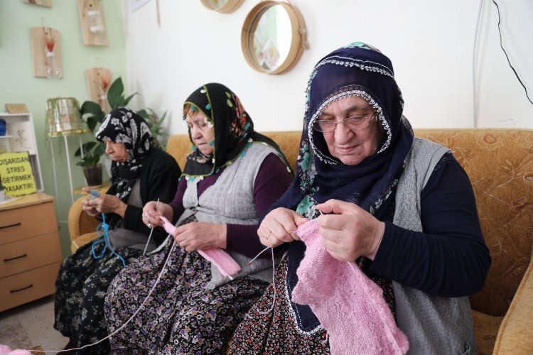 Atölyedeki çalışmalarıyla nispeten hareketli bir yaşama kavuşan yaşlılar ise bu sayede motivasyonlarını artırıyorlar ve moral depoluyor.