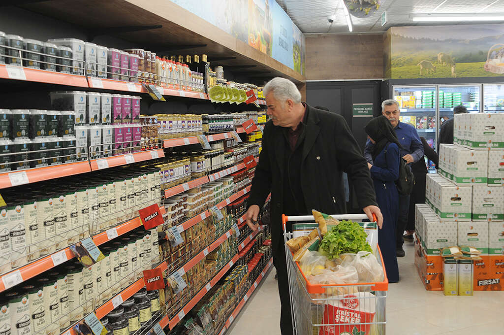 “Makarna, un, salça, pirinç, bulgur, mercimek, nohut, fasulye, şeker, ay çiçek yağı, zeytin yağı, tavuk ürünleri, tam yağlı süt, yarım yağlı süt, yumurta, peynir, tereyağı, bal, zeytin, çay, Türk kahvesi, patates, kuru soğan, karpuz, kavun, çamaşır deterjanı, bulaşık deterjanı, çamaşır suyu, sıvı sabun, peçete, rulo havlu, kolonya, bebek bezi”