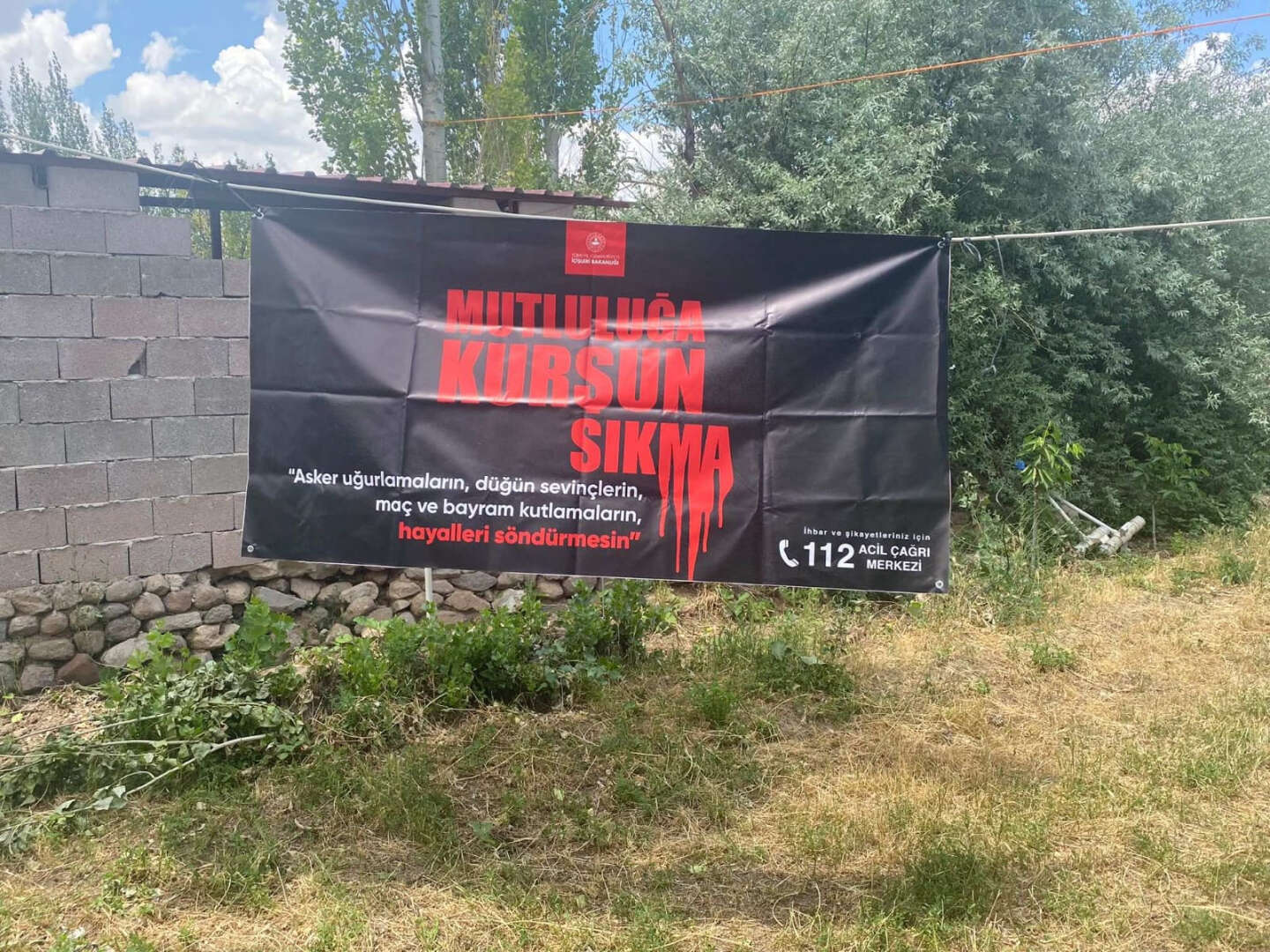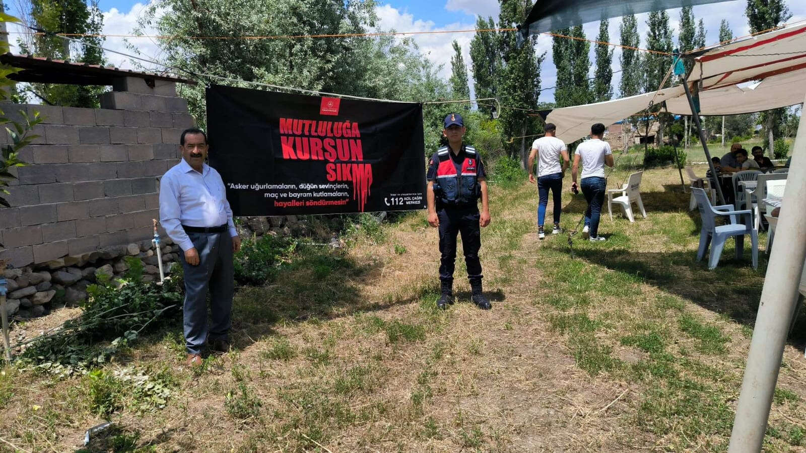 Niğde İl Jandarma Komutanlığı tarafından yapılan açıklamada şu ifadelere yer verildi: ''Düğün merasimlerinde bundan sonraki süreçte de emniyet ve asayiş tedbirlerinin artırılmasına yönelik devriye faaliyetlerine yoğunluk verilmektedir. Bu kapsamda düğün sahiplerine "Mutluluğa Kurşun Sıkma” sloganı çerçevesinde gerekli uyarılar yapılarak, düğün yerlerine pankart asılmaktadır. Kamuoyuna saygıyla duyurulur.''