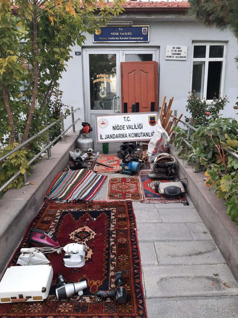 Niğde İli Merkez ve Bor İlçelerinde meydana gelen faili meçhul olaylarının aydınlatılması maksadıyla yapılan istihbarı çalışmalar neticesinde; çalınan malzemelerin Niğde il merkezinde iki farklı depoda saklandığı bilgisinin alınması üzerine adli makamlardan alınan arama kararına istinaden eş zamanlı yapılan aramada, (2)’si Bağ Bahçe ve Tarladan ve (11)’i Evden Hırsızlık olmak üzere (13) farklı hırsızlık olayında çalınan malzemeler ele geçirilmiş olup, malzemeler Cumhuriyet Başsavcılığının talimatı ile sahiplerine teslim edildi.