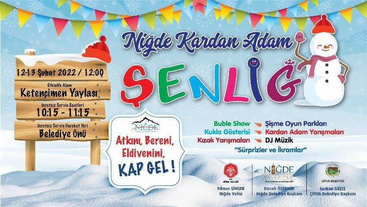 Kardan Adam Şenliğinde; buble show, kukla gösterisi, kızak yarışmaları ile sürprizler ve ikramlar da verilecek.